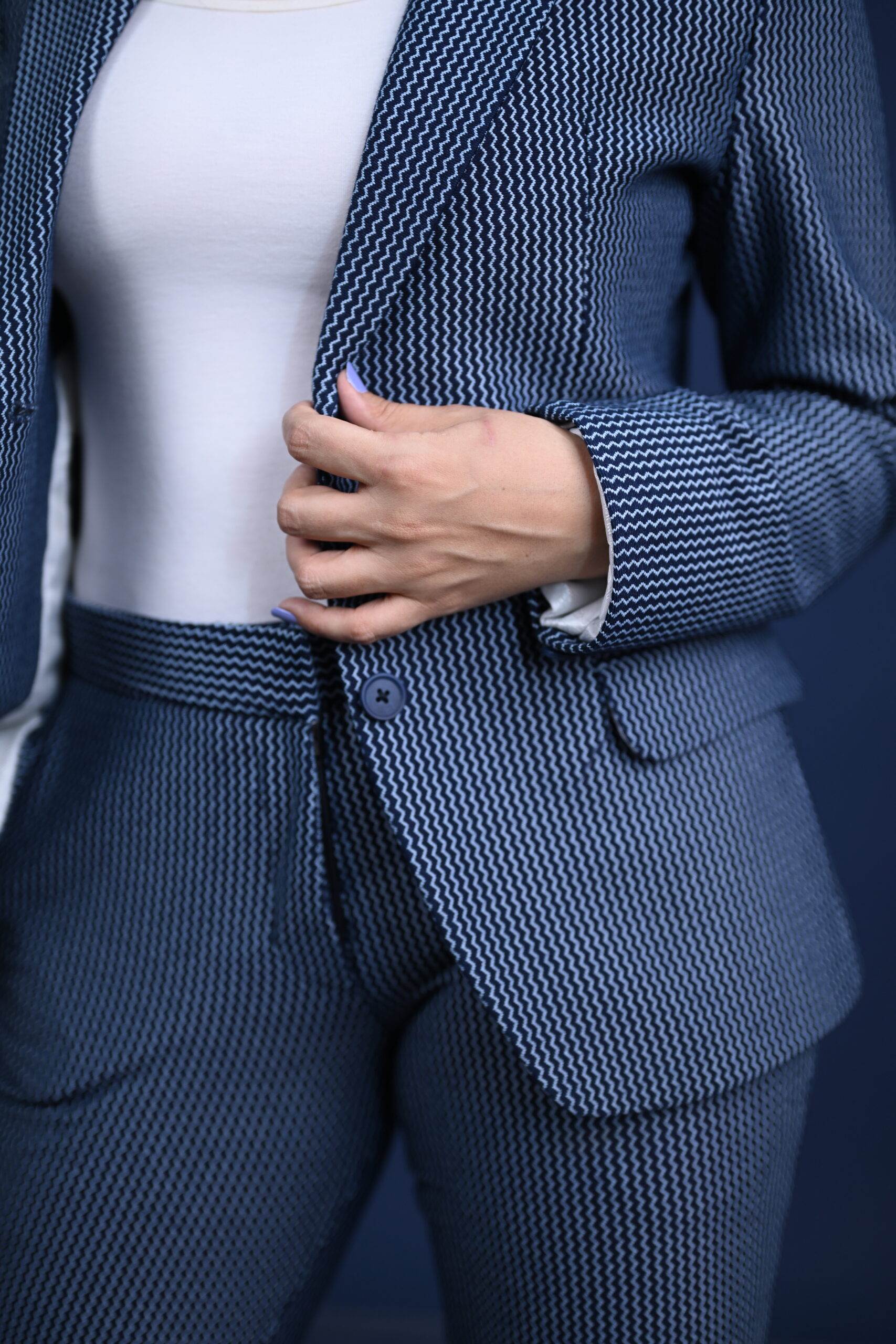 This meticulously crafted denim suit, adorned with a rugged textured finish, embodies the perfect blend of elegance and boldness. Designed for the discerning woman who commands attention. it’s not just a statement-its’s a legacy.