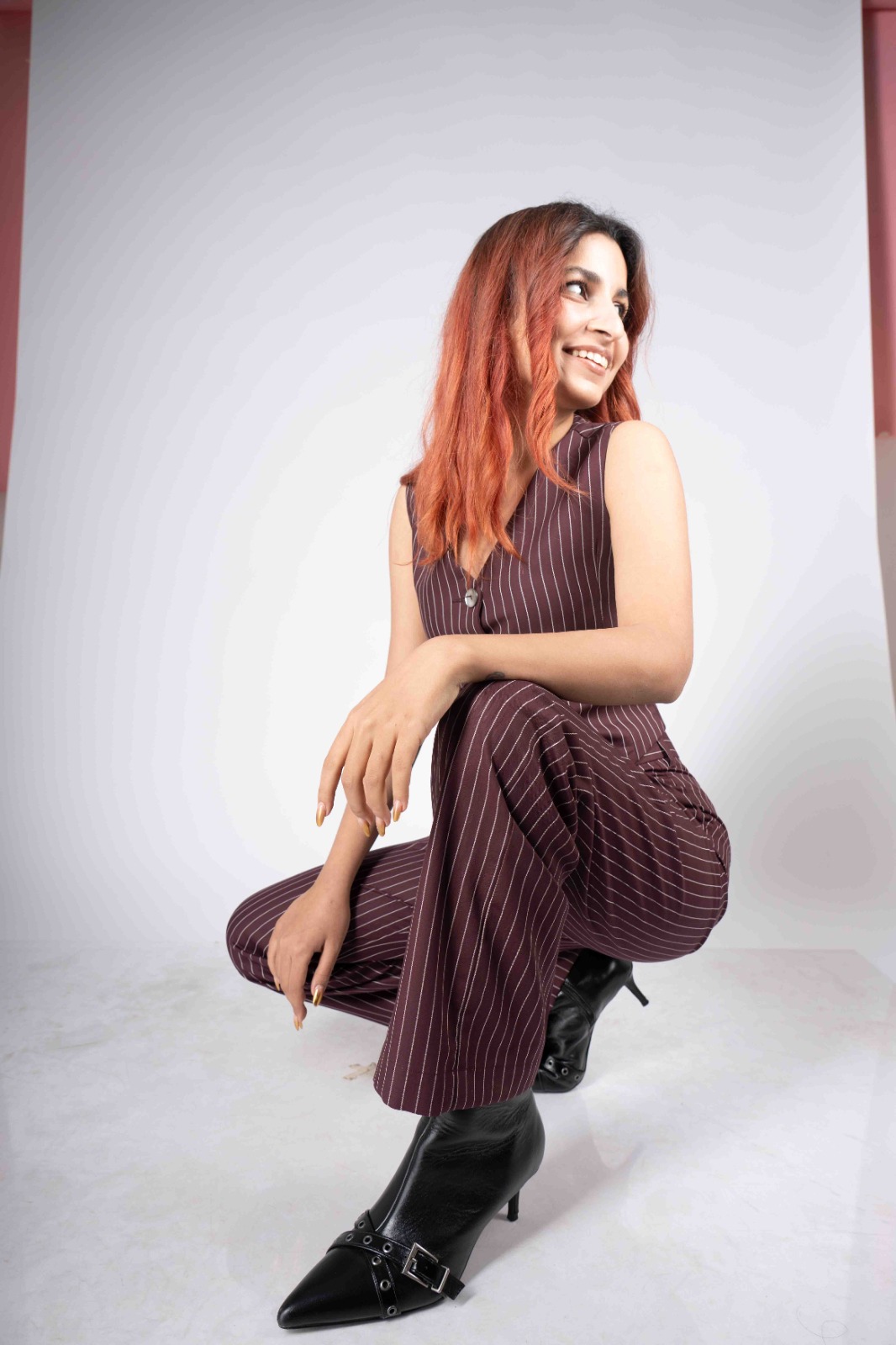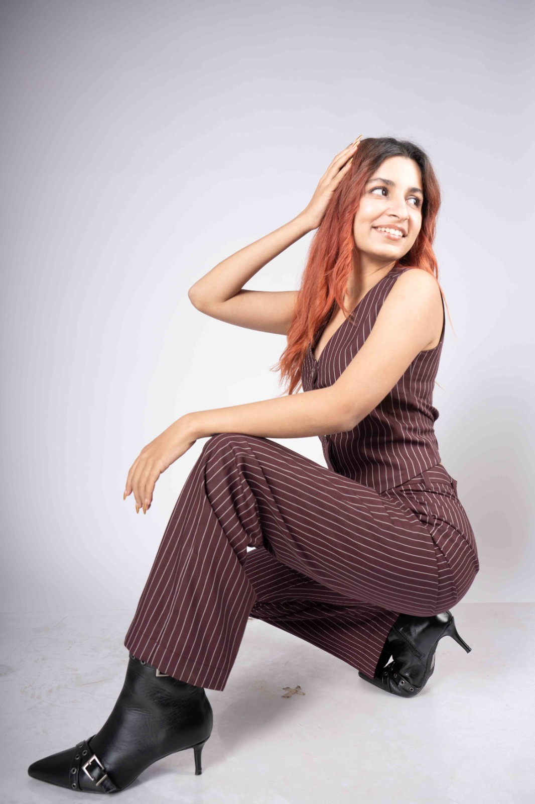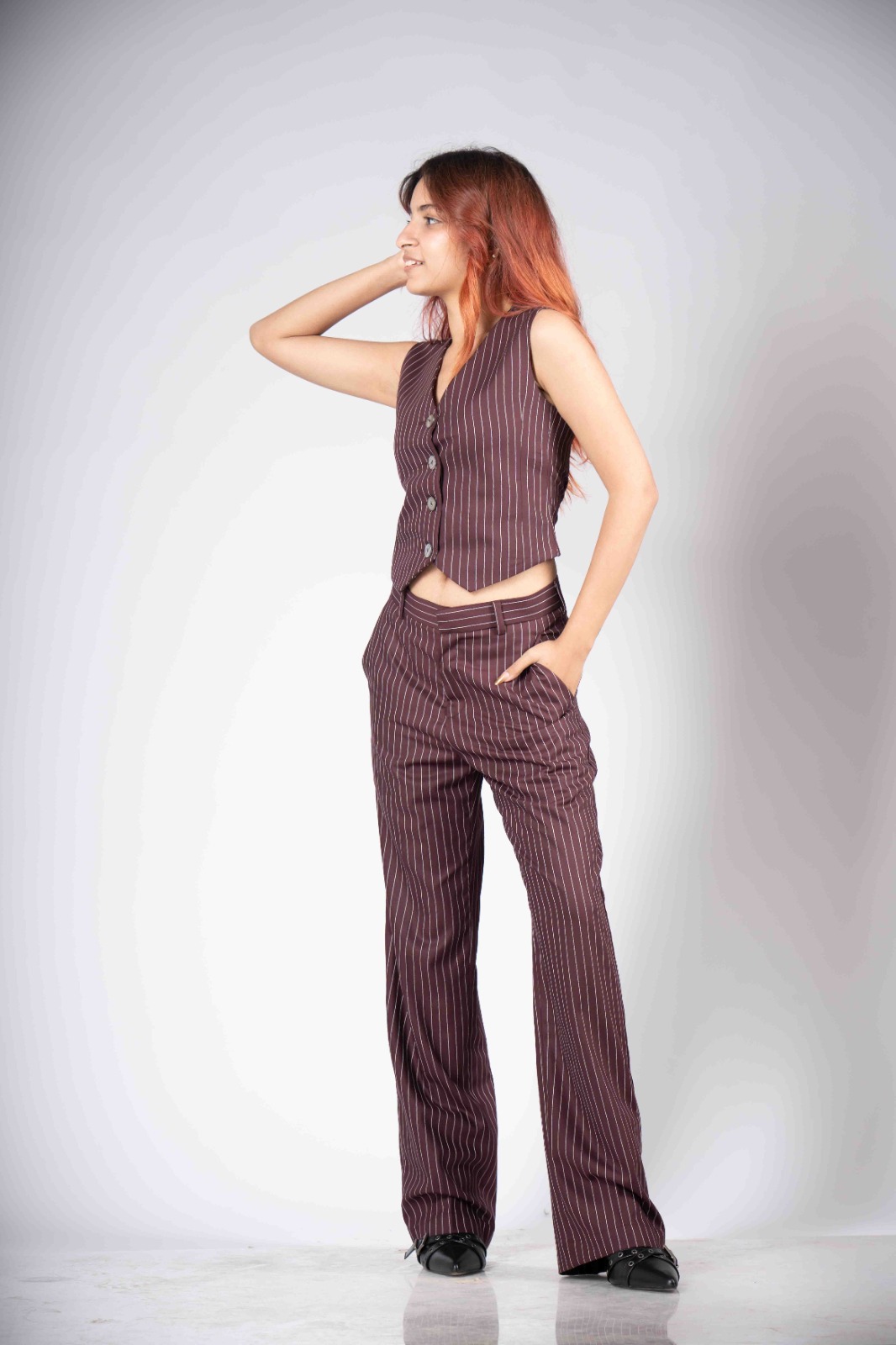 The Mulberry Striped Vest suit is designed with elegance to make you feel powerful yet chic. This piece includes a pant and a vest. The back of the vest has an extra-size adjusting panel which is made to fit your upper body perfectly. The fabric and its texture are made with perfection for an edgy look.